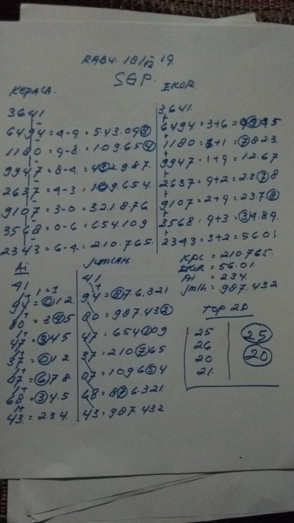 PREDIKSI SGP RABU 18 DESEMBER 2019 PREDIKSI HARIAN